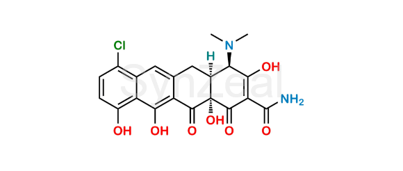 Demeclocycline EP Impurity F is chemically (4R,4aS,12aS)-7-chloro-4-(dimethylamino)-3,10,11,12a-tetrahydroxy-1,12-dioxo-1,4,4a,5,12,12a-hexahydrotetracene-2-carboxamide (as per EP). It is also known as 4-Epianhydrodemeclocycline (EP). Demeclocycline EP Impurity F is supplied with detailed characterization data compliant with regulatory guideline. Demeclocycline EP Impurity F can be used for the analytical method development, method validation (AMV), Quality Controlled (QC) application for Abbreviated New Drug Application (ANDA) or during commercial production of Demeclocycline.