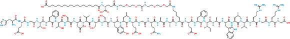 Sorrisos: N[C@H](C(N[C@@H](CCC(O)=O)C(NCC(N[C@@H]([C@@H](C)O)C(N[C@@H](CC1=CC=CC=C1)C(N[C@@H]([C@@H](C)O)C(N[C@@H](CO)C(N[C@@H](CC(O)=O)C(N[C@@H](C(C)C)C(N[C@@H](CO)C(N[C@@H](CO)C(N[C@@H](CC2=CC=C(O)C=C2)C(N[C@@H](CC(C)C)C(N[C@@H](CCC(O)=O)C(NCC(N[C@@H](CCC(N)=O)C(N[C@@H](C)C(N[C@@H](C)C(N[C@@H](CCCCNC(COCCOCCNC(COCCOCCNC(CC[C@H](C(O)=O)NC(CCCCCCCCCCCCCCCCC(O)=O)=O)=O)=O)=O)C(N[C@@H](CCC(O)=O)C(N[C@@H](CC3=CC=CC=C3)C(N[C@@H]([C@@H](C)CC)C(N[C@@H](C)C(N[C@@H](CC4=CNC5=C4C=CC=C5)C(N[C@@H](CC(C)C)C(N[C@@H](C(C)C)C(N[C@@H](CCCNC(N)=N)C(NCC(N[C@@H](CCCNC(N)=N)C(NCC(O)=O)=O)=O)=O)=O)=O)=O)=O)=O)=O)=O)=O)=O)=O)=O)=O)=O)=O)=O)=O)=O)=O)=O)=O)=O)=O)=O)=O)=O)=O)CC6=CNC=N6