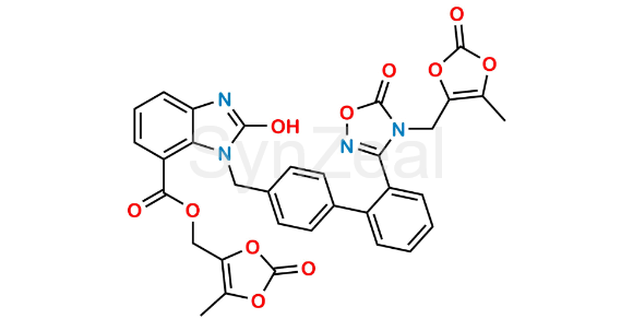 Nome Químico: (5-Methyl-2-oxo-1,3-dioxol-4-yl)methyl 2-hydroxy-1-((2'-(4-((5-methyl-2-oxo-1,3-dioxol-4-yl)methyl)-5-oxo-4,5-dihydro-1,2,4-oxadiazol-3-yl)-[1,1'-biphenyl]-4-yl)methyl)-1H-benzo[d]imidazole-7-carboxylate