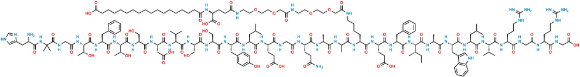 Sorrisos: O=C(C[C@H](NC([C@H](CO)NC([C@H]([C@H](O)C)NC([C@H](CC1=CC=CC=C1)NC([C@H]([C@H](O)C)NC(CNC(C(C)(C)NC([C@@H](N)CC2=CNC=N2)=O)=O)=O)=O)=O)=O)=O)C(N[C@@H](C(C)C)C(N[C@@H](CO)C(N[C@@H](CO)C(N[C@@H](CC3=CC=C(O)C=C3)C(N[C@@H](CC(C)C)C(N[C@@H](CCC(O)=O)C(NCC(N[C@@H](CCC(N)=O)C(N[C@@H](C)C(NC(C)C(N[C@H](C(N[C@@H](CCC(O)=O)C(N[C@@H](CC4=CC=CC=C4)C(N[C@@H]([C@@H](C)CC)C(N[C@@H](C)C(N[C@@H](CC5=CNC6=C5C=CC=C6)C(N[C@@H](CC(C)C)C(N[C@@H](C(C)C)C(N[C@@H](CCCNC(N)=N)C(NCC(N[C@H](C(NCC(O)=O)=O)CCCNC(N)=N)=O)=O)=O)=O)=O)=O)=O)=O)=O)=O)CCCCNC(COCCOCCNC(COCCOCCNC(CC[C@@H](C(O)=O)NC(CCCCCCCCCCCCCCCCC(O)=O)=O)=O)=O)=O)=O)=O)=O)=O)=O)=O)=O)=O)=O)=O)=O)O
