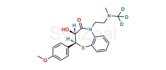 Desacetyl Diltiazem D3 is chemically (2S,3S)-3-hydroxy-2-(4-methoxyphenyl)-5-(2-(methyl(methyl-d3)amino)ethyl)-2,3-dihydrobenzo[b][1,4]thiazepin-4(5H)-one. Desacetyl Diltiazem D3 is supplied with detailed characterization data compliant with regulatory guideline. Desacetyl Diltiazem D3 can be used for the analytical method development, method validation (AMV), Quality Controlled (QC) application for Abbreviated New Drug Application (ANDA) or during commercial production of Diltiazem.