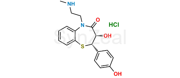 Desacetyl N, O-Didesmethyl Diltiazem (HCl salt) is chemically (2S,3S)-3-Hydroxy-2-(4-hydroxyphenyl)-5-(2-(methylamino)ethyl)-2,3-dihydrobenzo[b][1,4]thiazepin-4(5H)-one hydrochloride. Desacetyl N, O-Didesmethyl Diltiazem (HCl salt) is supplied with detailed characterization data compliant with regulatory guideline. Desacetyl N, O-Didesmethyl Diltiazem (HCl salt) can be used for the analytical method development, method validation (AMV), Quality Controlled (QC) application for Abbreviated New Drug Application (ANDA) or during commercial production of Diltiazem.