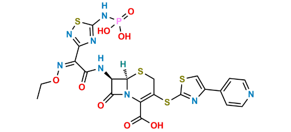 Nome Químico: (6R,7R)-7-((Z)-2-(ethoxyimino)-2-(5-(phosphonoamino)-1,2,4-thiadiazol-3-yl)acetamido)-8-oxo-3-((4-(pyridin-4-yl)thiazol-2-yl)thio)-5-thia-1-azabicyclo[4.2.0]oct-2-ene-2-carboxylic acid