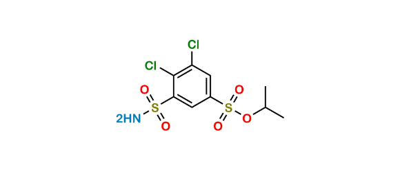 Dichlorphenamide Mono Isopropyl Ester Monoamide Impurity is chemically Isopropyl 3,4-dichloro-5-sulfamoylbenzenesulfonate. Dichlorphenamide Mono Isopropyl Ester Monoamide Impurity is supplied with detailed characterization data compliant with regulatory guideline. Dichlorphenamide Mono Isopropyl Ester Monoamide Impurity can be used for the analytical method development, method validation (AMV), Quality Controlled (QC) application for Abbreviated New Drug Application (ANDA) or during commercial production of Diclofenamide.