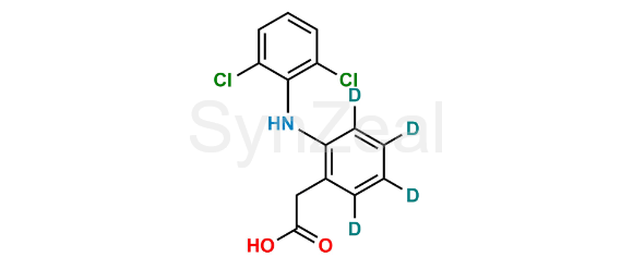 Diclofenac D4 (Possibility 1) is chemically 2-(2-((2,6-Dichlorophenyl)amino)phenyl-3,4,5,6-d4)acetic acid. Diclofenac D4 (Possibility 1) is supplied with detailed characterization data compliant with regulatory guideline. Diclofenac D4 (Possibility 1) can be used for the analytical method development, method validation (AMV), Quality Controlled (QC) application for Abbreviated New Drug Application (ANDA) or during commercial production of Diclofenac.