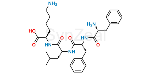 Difelikefalin Acid Impurity is chemically D-phenylalanyl-D-phenylalanyl-D-leucyl-D-lysine. Difelikefalin Acid Impurity is supplied with detailed characterization data compliant with regulatory guideline. Difelikefalin Acid Impurity can be used for the analytical method development, method validation (AMV), Quality Controlled (QC) application for Abbreviated New Drug Application (ANDA) or during commercial production of Difelikefalin.