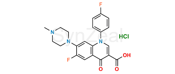 Nome Químico: 6-Fluoro-1-(4-fluorophenyl)-7-(4-methylpiperazin- 1-yl)-4-oxo-1,4-dihydroquinoline-3-carboxylic acid hydrochloride (as per EP)