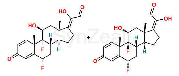 Difluprednate Impurity 12 is chemically (E)-2-((6S,8S,9R,10S,11S,13S,14S)-6,9-Difluoro-11-hydroxy-10,13-dimethyl-3-oxo-3,6,7,8,9,10,11,12,13,14,15,16-dodecahydro-17H-cyclopenta[a]phenanthren-17-ylidene)-2-hydroxyacetaldehyde compound with (Z)-2-((6S,8S,9R,10S,11S,13S,14S)-6,9-difluoro-11-hydroxy-10,13-dimethyl-3-oxo-3,6,7,8,9,10,11,12,13,14,15,16-dodecahydro-17H-cyclopenta[a]phenanthren-17-ylidene)-2-hydroxyacetaldehyde (1:1). Difluprednate Impurity 12 is supplied with detailed characterization data compliant with regulatory guideline. Difluprednate Impurity 12 can be used for the analytical method development, method validation (AMV), Quality Controlled (QC) application for Abbreviated New Drug Application (ANDA) or during commercial production of Difluprednate.