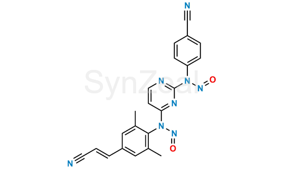 Dinitroso Rilpivirine is chemically (E)-N-(2-((4-cyanophenyl)(nitroso)amino)pyrimidin-4-yl)-N-(4-(2-cyanovinyl)-2,6-dimethylphenyl)nitrous amide . Dinitroso Rilpivirine is supplied with detailed characterization data compliant with regulatory guideline. Dinitroso Rilpivirine can be used for the analytical method development, method validation (AMV), Quality Controlled (QC) application for Abbreviated New Drug Application (ANDA) or during commercial production of Rilpivirine .