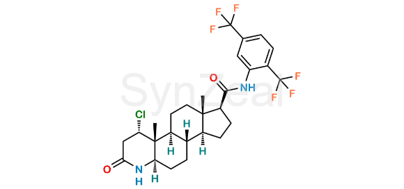Nome Químico: N-[2,5-bis(trifluoromethyl)phenyl]-1α-chloro-3-oxo-4-aza-5α-androstane-17β-carboxamide (as per EP) ; N-[2,5-Bis(trifluoromethyl)phenyl]-1α-chloro-3-oxo-4-aza-5α-androstane-17β-carboxamide (as per USP)