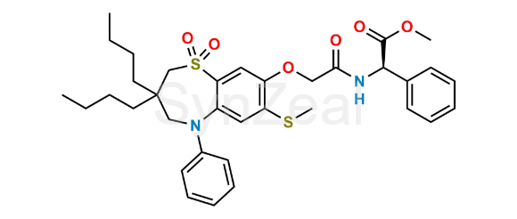 Nome Químico: Methyl (R)-2-(2-((3,3-dibutyl-7-(methylthio)-1,1-dioxido-5-phenyl-2,3,4,5-tetrahydrobenzo[b][1,4]thiazepin-8-yl)oxy)acetamido)-2-phenylacetate