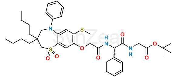 Nome Químico: Tert-butyl (S)-(2-(2-((3,3-dibutyl-7-(methylthio)-1,1-dioxido-5-phenyl-2,3,4,5-tetrahydrobenzo[b][1,4]thiazepin-8-yl)oxy)acetamido)-2-phenylacetyl)glycinate