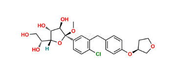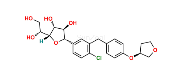 Nome Químico: (1S)-1,5-Anhydro-1-C-[4-chloro-3-[[4-[[(3S)-tetrahydro-3-furanyl]oxy] phenyl]methyl]phenyl]-D-glucitol ; (2S,3R,4R,5S,6R)-2-(4-Chloro-3-(4-(((S)-tetrahydrofuran-3-yl)oxy)benzyl)phenyl)-6-(hydroxymethyl)tetrahydro-2H-pyran-3,4,5-triol