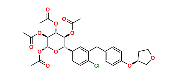 Empagliflozin Impurity 102 is chemically (2R,3S,4R,5S,6S)-6-(4-chloro-3-(4-(((S)-tetrahydrofuran-3-yl)oxy)benzyl)phenyl)tetrahydro-2H-pyran-2,3,4,5-tetrayl tetraacetate. Empagliflozin Impurity 102 is supplied with detailed characterization data compliant with regulatory guideline. Empagliflozin Impurity 102 can be used for the analytical method development, method validation (AMV), Quality Controlled (QC) application for Abbreviated New Drug Application (ANDA) or during commercial production of Empagliflozin.