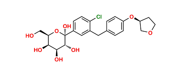 Empagliflozin Impurity 98 is chemically (2S,3R,4S,5R,6R)-2-(4-chloro-3-(4-(((S)-tetrahydrofuran-3-yl)oxy)benzyl)phenyl)-6-(hydroxymethyl)tetrahydro-2H-pyran-2,3,4,5-tetraol. Empagliflozin Impurity 98 is supplied with detailed characterization data compliant with regulatory guideline. Empagliflozin Impurity 98 can be used for the analytical method development, method validation (AMV), Quality Controlled (QC) application for Abbreviated New Drug Application (ANDA) or during commercial production of Empagliflozin.