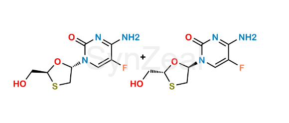 Emtricitabine Impurity 22 is chemically 4-Amino-5-fluoro-1-((2R,5R)-2-(hydroxymethyl)-1,3-oxathiolan-5-yl)pyrimidin-2(1H)-one compound with 4-amino-5-fluoro-1-((2S,5S)-2-(hydroxymethyl)-1,3-oxathiolan-5-yl)pyrimidin-2(1H)-one (1:1). Emtricitabine Impurity 22 is supplied with detailed characterization data compliant with regulatory guideline. Emtricitabine Impurity 22 can be used for the analytical method development, method validation (AMV), Quality Controlled (QC) application for Abbreviated New Drug Application (ANDA) or during commercial production of Emtricitabine.