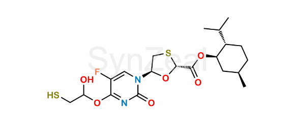 Nome Químico: (1R,2S,5R)-2-isopropyl-5-methylcyclohexyl (2R,5R)-5-(5-fluoro-4-(1-hydroxy-2-mercaptoethoxy)-2-oxopyrimidin-1(2H)-yl)-1,3-oxathiolane-2-carboxylate