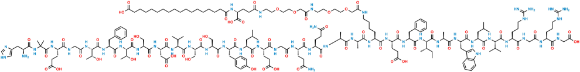 Sorrisos: N[C@H](C(NC(C)(C)C(N[C@@H](CCC(O)=O)C(NCC(N[C@@H]([C@@H](C)O)C(N[C@@H](CC1=CC=CC=C1)C(N[C@@H]([C@@H](C)O)C(N[C@@H](CO)C(N[C@@H](CC(O)=O)C(N[C@@H](C(C)C)C(N[C@@H](CO)C(N[C@@H](CO)C(N[C@@H](CC2=CC=C(O)C=C2)C(N[C@@H](CC(C)C)C(N[C@@H](CCC(O)=O)C(NCC(N[C@@H](CCC(N)=O)C(N[C@@H](CCC(N)=O)C(N[C@@H](C)C(N[C@@H](C)C(N[C@@H](CCCCNC(COCCOCCNC(COCCOCCNC(CC[C@H](C(O)=O)NC(CCCCCCCCCCCCCCCCC(O)=O)=O)=O)=O)=O)C(N[C@@H](CCC(O)=O)C(N[C@@H](CC3=CC=CC=C3)C(N[C@@H]([C@@H](C)CC)C(N[C@@H](C)C(N[C@@H](CC4=CNC5=C4C=CC=C5)C(N[C@@H](CC(C)C)C(N[C@@H](C(C)C)C(N[C@@H](CCCNC(N)=N)C(NCC(N[C@@H](CCCNC(N)=N)C(NCC(O)=O)=O)=O)=O)=O)=O)=O)=O)=O)=O)=O)=O)=O)=O)=O)=O)=O)=O)=O)=O)=O)=O)=O)=O)=O)=O)=O)=O)=O)=O)=O)=O)CC6=CNC=N6