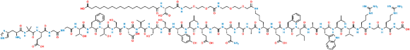 Sorrisos: O=C(CNC(CNC([C@H](CCC(O)=O)NC(C(C)(C)NC([C@@H](N)CC1=CNC=N1)=O)=O)=O)=O)N[C@@H]([C@@H](C)O)C(N[C@@H](CC2=CC=CC=C2)C(N[C@@H]([C@@H](C)O)C(N[C@@H](CO)C(N[C@@H](CC(O)=O)C(N[C@@H](C(C)C)C(N[C@@H](CO)C(N[C@@H](CO)C(N[C@@H](CC3=CC=C(O)C=C3)C(N[C@@H](CC(C)C)C(N[C@@H](CCC(O)=O)C(NCC(N[C@@H](CCC(N)=O)C(N[C@@H](C)C(N[C@@H](C)C(N[C@@H](CCCCNC(COCCOCCNC(COCCOCCNC(CC[C@H](C(O)=O)NC(CCCCCCCCCCCCCCCCC(O)=O)=O)=O)=O)=O)C(N[C@@H](CCC(O)=O)C(N[C@@H](CC4=CC=CC=C4)C(N[C@@H]([C@@H](C)CC)C(N[C@@H](C)C(N[C@@H](CC5=CNC6=C5C=CC=C6)C(N[C@@H](CC(C)C)C(N[C@@H](C(C)C)C(N[C@@H](CCCNC(N)=N)C(NCC(N[C@@H](CCCNC(N)=N)C(NCC(O)=O)=O)=O)=O)=O)=O)=O)=O)=O)=O)=O)=O)=O)=O)=O)=O)=O)=O)=O)=O)=O)=O)=O)=O)=O)=O)=O