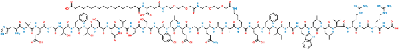 Sorrisos: N[C@H](C(NC(C)(C)C(N[C@@H](CCC(O)=O)C(NCC(N[C@@H]([C@@H](C)O)C(N[C@@H](CC1=CC=CC=C1)C(N[C@@H]([C@@H](C)O)C(N[C@@H](CO)C(N[C@@H](CC(O)=O)C(N[C@@H](C(C)C)C(N[C@@H](CO)C(N[C@@H](CO)C(N[C@@H](CC2=CC=C(O)C=C2)C(N[C@@H](CC(C)C)C(N[C@@H](CCC(O)=O)C(NCC(N[C@@H](CCC(N)=O)C(N[C@@H](C)C(N[C@@H](C)C(N[C@@H](CCCCNC(COCCOCCNC(COCCOCCNC(CC[C@H](C(O)=O)NC(CCCCCCCCCCCCCCCCC(O)=O)=O)=O)=O)=O)C(N[C@@H](CCC(O)=O)C(N[C@@H](CC3=CC=CC=C3)C(N[C@@H]([C@@H](C)CC)C(N[C@@H](C)C(N[C@@H](CC4=CNC5=C4C=CC=C5)C(N[C@@H](CC(C)C)C(N[C@@H](CC(C)C)C(N[C@H](C(N[C@@H](CCCNC(N)=N)C(NCC(N[C@@H](CCCNC(N)=N)C(NCC(O)=O)=O)=O)=O)=O)C(C)C)=O)=O)=O)=O)=O)=O)=O)=O)=O)=O)=O)=O)=O)=O)=O)=O)=O)=O)=O)=O)=O)=O)=O)=O)=O)=O)=O)CC6=CNC=N6