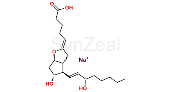 Epoprostenol Impurity 1 is chemically (Z)-5-((3aR,4R,5R,6aS)-5-Hydroxy-4-((S,E)-3-hydroxyoct-1-en-1-yl)hexahydro-2H-cyclopenta[b]furan-2-ylidene)pentanoic acid, sodium salt. Epoprostenol Impurity 1 is supplied with detailed characterization data compliant with regulatory guideline. Epoprostenol Impurity 1 can be used for the analytical method development, method validation (AMV), Quality Controlled (QC) application for Abbreviated New Drug Application (ANDA) or during commercial production of Epoprostenol.