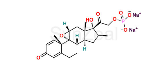 Epoxybetamethasone Sodium Phosphate is chemically Sodium 2-((4aS,4bR,5aR,6aS,7R,8S,9aS,9bS)-7-hydroxy-4a,6a,8-trimethyl-2-oxo-2,4a,5a,6,6a,7,8,9,9a,9b,10,11-dodecahydrocyclopenta[1,2]phenanthro[4,4a-b]oxiren-7-yl)-2-oxoethyl phosphate. Epoxybetamethasone Sodium Phosphate is supplied with detailed characterization data compliant with regulatory guideline. Epoxybetamethasone Sodium Phosphate can be used for the analytical method development, method validation (AMV), Quality Controlled (QC) application for Abbreviated New Drug Application (ANDA) or during commercial production of Betamethasone Sodium Phosphate.