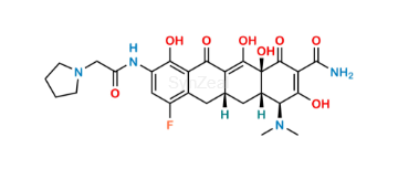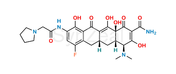 Nome Químico: (4S,4aS,5aR,12aS)-4-(dimethylamino)-7-fluoro-3,10,12,12a-tetrahydroxy-1,11-dioxo-9-(2-(pyrrolidin-1-yl)acetamido)-1,4,4a,5,5a,6,11,12a-octahydrotetracene-2-carboxamide