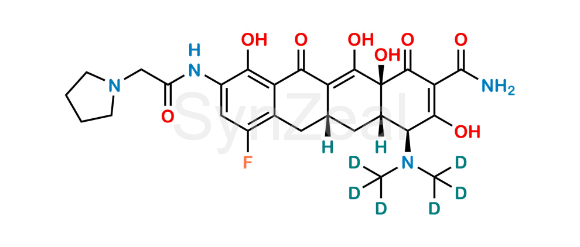 Nome Químico: (4S,4aS,5aR,12aS)-4-(bis(methyl-d3)amino)-7-fluoro-3,10,12,12a-tetrahydroxy-1,11-dioxo-9-(2-(pyrrolidin-1-yl)acetamido)-1,4,4a,5,5a,6,11,12a-octahydrotetracene-2-carboxamide