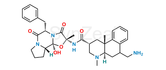 Ergotamine Impurity 1 is chemically (2R,4aR,10bR)-6-(aminomethyl)-N-((2R,5S,10aS,10bS)-5-benzyl-10b-hydroxy-2-methyl-3,6-dioxooctahydro-8H-oxazolo[3,2-a]pyrrolo[2,1-c]pyrazin-2-yl)-4,10b-dimethyl-1,2,3,4,4a,5,6,10b-octahydrobenzo[f]quinoline-2-carboxamide. Ergotamine Impurity 1 is supplied with detailed characterization data compliant with regulatory guideline. Ergotamine Impurity 1 can be used for the analytical method development, method validation (AMV), Quality Controlled (QC) application for Abbreviated New Drug Application (ANDA) or during commercial production of Dihydroergocristine mesilate.
