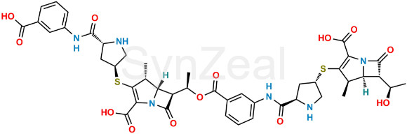 Nome Químico: (4R,5S,6S)-3-(((3S,5R)-5-((3-(((R)-1-((4R,5S,6S)-2-carboxy-3-(((3S,5R)-5-((3-carboxyphenyl)carbamoyl)pyrrolidin-3-yl)thio)-4-methyl-7-oxo-1-azabicyclo[3.2.0]hept-2-en-6-yl)ethoxy)carbonyl)phenyl)carbamoyl)pyrrolidin-3-yl)thio)-6-((R)-1-hydroxyethyl)-4-methyl-7-oxo-1-azabicyclo[3.2.0]hept-2-ene-2-carboxylic acid