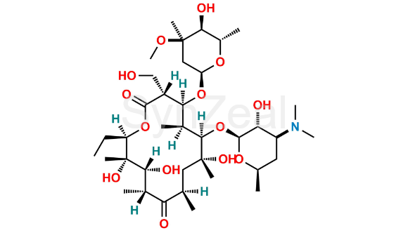 Nome Químico: (3R,4S,5S,6R,7R,9R,11R,12R,13S,14R)-4-[(2,6-dideoxy-3-C-methyl-3-O-methyl-α-L-ribo-hexopyranosyl)oxy]-14-ethyl-7,12,13-trihydroxy-3-(hydroxymethyl)-5,7,9,11,13-pentamethyl-6-[[3,4,6-trideoxy-3-(dimethylamino)-β-D-xylo-hexopyranosyl]oxy]oxacyclotetradecane-2,10-dione (as per EP) ; (3R,4S,5S,6R,7R,9R,11R,12R,13S,14R)-4-[(2,6-Dideoxy-3-C-methyl-3-O-methyl-α-l-ribo-hexopyranosyl)oxy]-14-ethyl-7,12,13-trihydroxy-3-hydroxymethyl-5,7,9,11,13-pentamethyl-6-[(3,4,6-trideoxy-3-dimethylamino-β-d-xylo-hexopyranosyl)oxy]oxacyclotetradecane-2,10-dione (as per USP)