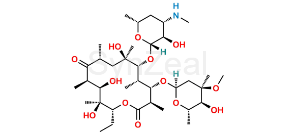Nome Químico: (3R,4S,5S,6R,7R,9R,11R,12R,13S,14R)-4-[(2,6-dideoxy-3-C-methyl-3-O-methyl-α-L-ribo-hexopyranosyl)oxy]-14-ethyl-7,12,13-trihydroxy-3,5,7,9,11,13-hexamethyl-6-[[3,4,6-trideoxy-3-(methylamino)-β-D-xylo-hexopyranosyl]oxy]oxacyclotetradecane-2,10-dione (as per EP); (3R,4S,5S,6R,7R,9R,11R,12R,13S,14R)-14-Ethyl-7,12,13-trihydroxy-4-{[(2R,4R,5S,6S)-5-hydroxy-4-methoxy-4,6-dimethyltetrahydro-2H-pyran-2-yl]oxy}-6-{[(2S,3R,4S,6R)-3-hydroxy-6-methyl-4-(methylamino)tetrahydro-2H-pyran-2-yl]oxy}-3,5,7,9,11,13-hexamethyloxacyclotetradecane-2,10-dione (as per USP)