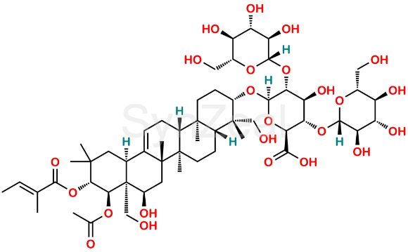 Nome Químico: (2S,3S,4S,5R,6R)-6-(((3S,4S,4aR,6aR,6bS,8R,8aR,9R,10R,12aS,14aR,14bR)-9-Acetoxy-8-hydroxy-4,8a-bis(hydroxymethyl)-4,6a,6b,11,11,14b-hexamethyl-10-(((E)-2-methylbut-2-enoyl)oxy)-1,2,3,4,4a,5,6,6a,6b,7,8,8a,9,10,11,12,12a,14,14a,14b-icosahydropicen-3-yl)oxy)-4-hydroxy-3,5-bis(((2S,3R,4S,5S,6R)-3,4,5-trihydroxy-6-(hydroxymethyl)tetrahydro-2H-pyran-2-yl)oxy)tetrahydro-2H-pyran-2-carboxylic acid