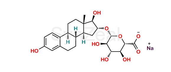 Estriol 16-α-glucuronide is chemically Sodium (2S,3S,4S,5R,6R)-6-(((8R,9S,13S,14S,16R,17R)-3,17-dihydroxy-13-methyl-7,8,9,11,12,13,14,15,16,17-decahydro-6H-cyclopenta[a]phenanthren-16-yl)oxy)-3,4,5-trihydroxytetrahydro-2H-pyran-2-carboxylate. Estriol 16-α-glucuronide is supplied with detailed characterization data compliant with regulatory guideline. Estriol 16-α-glucuronide can be used for the analytical method development, method validation (AMV), Quality Controlled (QC) application for Abbreviated New Drug Application (ANDA) or during commercial production of Estradiol.