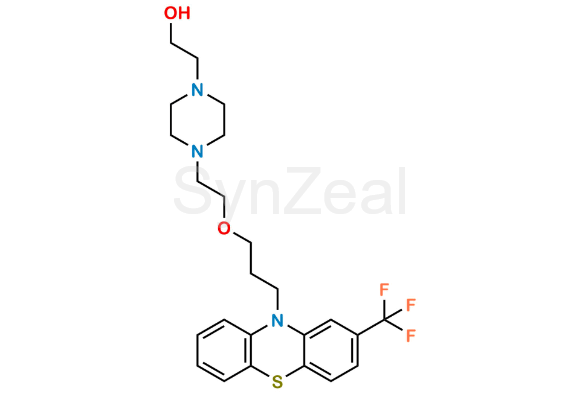 Fluphenazine Impurity 14 is chemically 2-(4-(2-(3-(2-(trifluoromethyl)-10H-phenothiazin-10-yl)propoxy)ethyl)piperazin-1-yl)ethan-1-ol. Fluphenazine Impurity 14 is supplied with detailed characterization data compliant with regulatory guideline. Fluphenazine Impurity 14 can be used for the analytical method development, method validation (AMV), Quality Controlled (QC) application for Abbreviated New Drug Application (ANDA) or during commercial production of Fluphenazine.