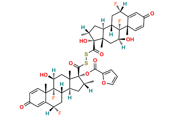 Nome Químico: (6S,8S,9R,10S,11S,13S,14S,16R,17R)-6,9-Difluoro-11,17-dihydroxy-10,13,16-trimethyl-3-oxo-6,7,8,9,10,11,12,13,14,15,16,17-dodecahydro-3H-cyclopenta[a]phenanthrene-17-carboxylic (6S,8S,9R,10S,11S,13S,14S,16R,17R)-6,9-difluoro-17-((furan-2-carbonyl)oxy)-11-hydroxy-10,13,16-trimethyl-3-oxo-6,7,8,9,10,11,12,13,14,15,16,17-dodecahydro-3H-cyclopenta[a]phenanthrene-17-carboxylic dithioperoxyanhydride