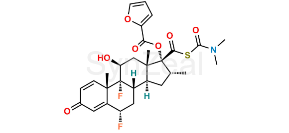 Nome Químico: (6S,8S,9R,10S,11S,13S,14S,16R,17R)-6,9-difluoro-17-((furan-2-carbonyl)oxy)-11-hydroxy-10,13,16-trimethyl-3-oxo-6,7,8,9,10,11,12,13,14,15,16,17-dodecahydro-3H-cyclopenta[a]phenanthrene-17-carboxylic dimethylcarbamic thioanhydride