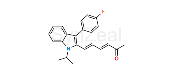 Fluvastatin Impurity 14 is chemically (3E,5E)-6-(3-(4-fluorophenyl)-1-isopropyl-1H-indol-2-yl)hexa-3,5-dien-2-one. Fluvastatin Impurity 14 is supplied with detailed characterization data compliant with regulatory guideline. Fluvastatin Impurity 14 can be used for the analytical method development, method validation (AMV), Quality Controlled (QC) application for Abbreviated New Drug Application (ANDA) or during commercial production of Fluvastatin.