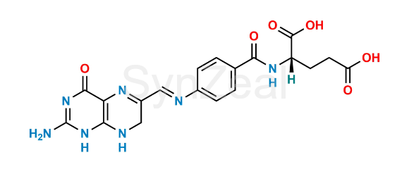 Folic Acid Impurity 18 is chemically (E)-(4-(((2-Amino-4-oxo-1,4,7,8-tetrahydropteridin-6-yl)methylene)amino)benzoyl)-L-glutamic acid. Folic Acid Impurity 18 is supplied with detailed characterization data compliant with regulatory guideline. Folic Acid Impurity 18 can be used for the analytical method development, method validation (AMV), Quality Controlled (QC) application for Abbreviated New Drug Application (ANDA) or during commercial production of Folic Acid.