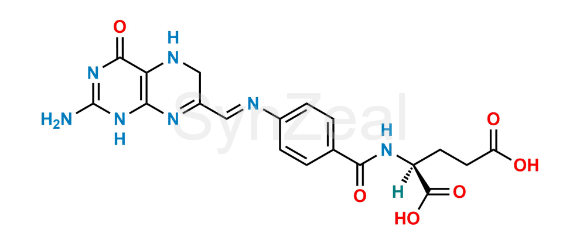 Folic Acid Impurity 20 is chemically (E)-(4-(((2-Amino-4-oxo-1,4,5,6-tetrahydropteridin-7-yl)methylene)amino)benzoyl)-L-glutamic acid. Folic Acid Impurity 20 is supplied with detailed characterization data compliant with regulatory guideline. Folic Acid Impurity 20 can be used for the analytical method development, method validation (AMV), Quality Controlled (QC) application for Abbreviated New Drug Application (ANDA) or during commercial production of Folic Acid.
