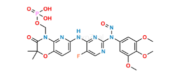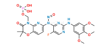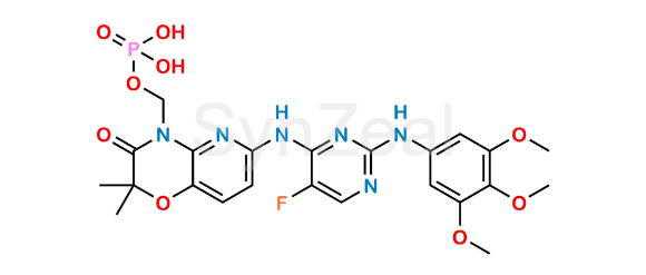 Nome Químico: (6-((5-Fluoro-2-((3,4,5-trimethoxyphenyl)amino)pyrimidin-4-yl)amino)-2,2-dimethyl-3-oxo-2,3-dihydro-4H-pyrido[3,2-b][1,4]oxazin-4-yl)methyl dihydrogen phosphate