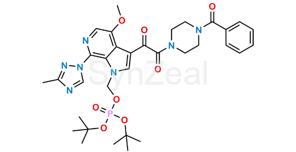 Nome Químico: (3-(2-(4-Benzoylpiperazin-1-yl)-2-oxoacetyl)-4-methoxy-7-(3-methyl-1H-1,2,4-triazol-1-yl)-1H-pyrrolo[2,3-c]pyridin-1-yl)methyl di-tert-butyl phosphate