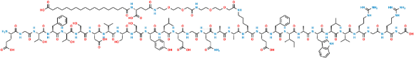Sorrisos: N[C@@H](CCC(O)=O)C(NCC(N[C@@H]([C@@H](C)O)C(N[C@@H](CC1=CC=CC=C1)C(N[C@@H]([C@@H](C)O)C(N[C@@H](CO)C(N[C@@H](CC(O)=O)C(N[C@@H](C(C)C)C(N[C@@H](CO)C(N[C@@H](CO)C(N[C@@H](CC2=CC=C(O)C=C2)C(N[C@@H](CC(C)C)C(N[C@@H](CCC(O)=O)C(NCC(N[C@@H](CCC(N)=O)C(N[C@@H](C)C(N[C@@H](C)C(N[C@@H](CCCCNC(COCCOCCNC(COCCOCCNC(CC[C@H](C(O)=O)NC(CCCCCCCCCCCCCCCCC(O)=O)=O)=O)=O)=O)C(N[C@@H](CCC(O)=O)C(N[C@@H](CC3=CC=CC=C3)C(N[C@@H]([C@@H](C)CC)C(N[C@@H](C)C(N[C@@H](CC4=CNC5=C4C=CC=C5)C(N[C@@H](CC(C)C)C(N[C@@H](C(C)C)C(N[C@@H](CCCNC(N)=N)C(NCC(N[C@@H](CCCNC(N)=N)C(NCC(O)=O)=O)=O)=O)=O)=O)=O)=O)=O)=O)=O)=O)=O)=O)=O)=O)=O)=O)=O)=O)=O)=O)=O)=O)=O)=O)=O)=O)=O