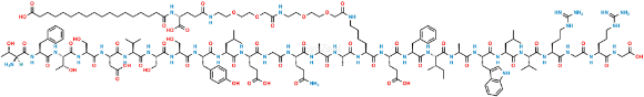 Sorrisos: O=C(N[C@@H](CC1=CC=CC=C1)C(N[C@@H]([C@@H](C)O)C(N[C@@H](CO)C(N[C@@H](CC(O)=O)C(N[C@@H](C(C)C)C(N[C@@H](CO)C(N[C@@H](CO)C(N[C@@H](CC2=CC=C(O)C=C2)C(N[C@@H](CC(C)C)C(N[C@@H](CCC(O)=O)C(NCC(N[C@@H](CCC(N)=O)C(N[C@@H](C)C(N[C@@H](C)C(N[C@@H](CCCCNC(COCCOCCNC(COCCOCCNC(CC[C@H](C(O)=O)NC(CCCCCCCCCCCCCCCCC(O)=O)=O)=O)=O)=O)C(N[C@@H](CCC(O)=O)C(N[C@@H](CC3=CC=CC=C3)C(N[C@@H]([C@@H](C)CC)C(N[C@@H](C)C(N[C@@H](CC4=CNC5=C4C=CC=C5)C(N[C@@H](CC(C)C)C(N[C@@H](C(C)C)C(N[C@@H](CCCNC(N)=N)C(NCC(N[C@@H](CCCNC(N)=N)C(NCC(O)=O)=O)=O)=O)=O)=O)=O)=O)=O)=O)=O)=O)=O)=O)=O)=O)=O)=O)=O)=O)=O)=O)=O)=O)=O)=O)[C@](N)([H])[C@H](O)C