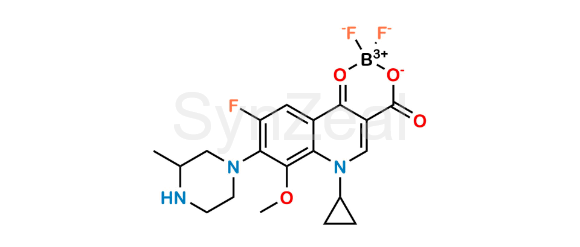 Gatifloxacin Impurity 11 is chemically 6-Cyclopropyl-2,2,9-trifluoro-7-methoxy-8-(3-methylpiperazin-1-yl)-2,6-dihydro-4H-1l3,2l4-[1,3,2]dioxaborinino[5,6-c]quinolin-4-one. Gatifloxacin Impurity 11 is supplied with detailed characterization data compliant with regulatory guideline. Gatifloxacin Impurity 11 can be used for the analytical method development, method validation (AMV), Quality Controlled (QC) application for Abbreviated New Drug Application (ANDA) or during commercial production of Gatifloxacin.