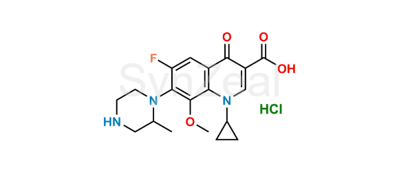 Gatifloxacin USP Related Compound E (HCl salt) is chemically 1-Cyclopropyl-6-fluoro-8-methoxy-7-(2-methylpiperazin-1-yl)-4-oxo-1,4-dihydroquinoline-3-carboxylic acid hydrochloride. Gatifloxacin USP Related Compound E (HCl salt) is supplied with detailed characterization data compliant with regulatory guideline. Gatifloxacin USP Related Compound E (HCl salt) can be used for the analytical method development, method validation (AMV), Quality Controlled (QC) application for Abbreviated New Drug Application (ANDA) or during commercial production of Gatifloxacin.