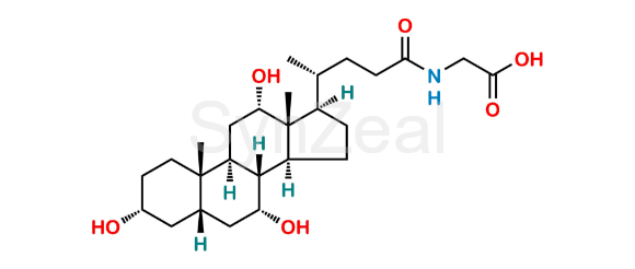 Glycocholic Acid is chemically ((R)-4-((3R,5S,7R,8R,9S,10S,12S,13R,14S,17R)-3,7,12-trihydroxy-10,13-dimethylhexadecahydro-1H-cyclopenta[a]phenanthren-17-yl)pentanoyl)glycine. Glycocholic Acid is supplied with detailed characterization data compliant with regulatory guideline. Glycocholic Acid can be used for the analytical method development, method validation (AMV), Quality Controlled (QC) application for Abbreviated New Drug Application (ANDA) or during commercial production of Glycocholic Acid.