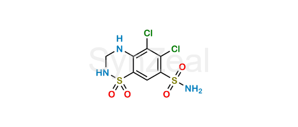 Hydrochlorothiazide 5-Chloro Impurity is chemically 5,6-Dichloro-3,4-dihydro-2H-1,2,4-benzothiadiazine-7-sulfonamide 1,1-dioxide ;. It is also known as 5-Chloro Hydrochlorothiazide. Hydrochlorothiazide 5-Chloro Impurity is supplied with detailed characterization data compliant with regulatory guideline. Hydrochlorothiazide 5-Chloro Impurity can be used for the analytical method development, method validation (AMV), Quality Controlled (QC) application for Abbreviated New Drug Application (ANDA) or during commercial production of Hydrochlorothiazide.