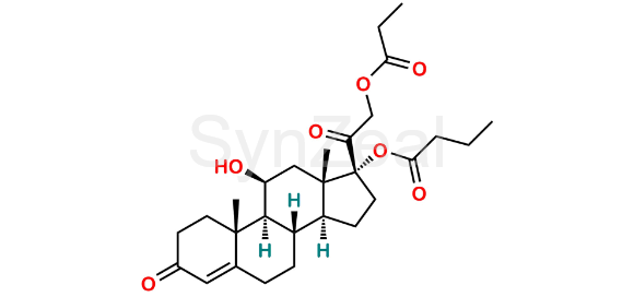 Nome Químico: (8S,9S,10R,11S,13S,14S,17R)-11-hydroxy-10,13-dimethyl-3-oxo-17-(2-(propionyloxy)acetyl)-2,3,6,7,8,9,10,11,12,13,14,15,16,17-tetradecahydro-1H-cyclopenta[a]phenanthren-17-yl butyrate