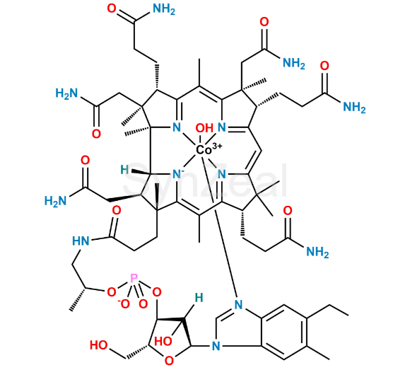 Hydroxocobalamin B5-Hydroxymethyl Derivative is chemically . Hydroxocobalamin B5-Hydroxymethyl Derivative is supplied with detailed characterization data compliant with regulatory guideline. Hydroxocobalamin B5-Hydroxymethyl Derivative can be used for the analytical method development, method validation (AMV), Quality Controlled (QC) application for Abbreviated New Drug Application (ANDA) or during commercial production of Hydroxocobalamin Acetate.
